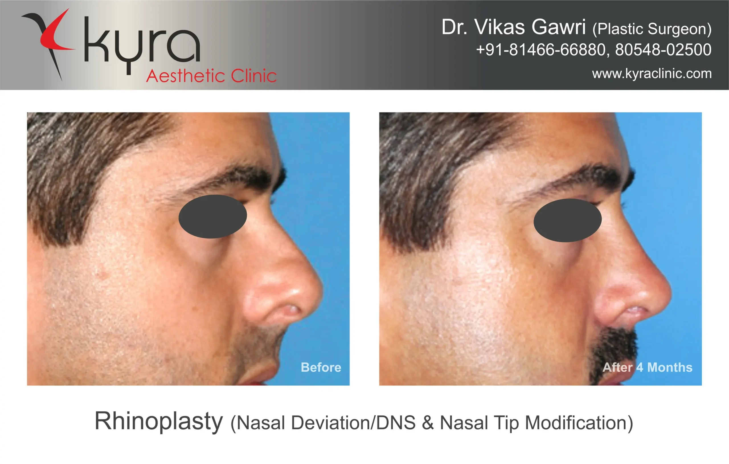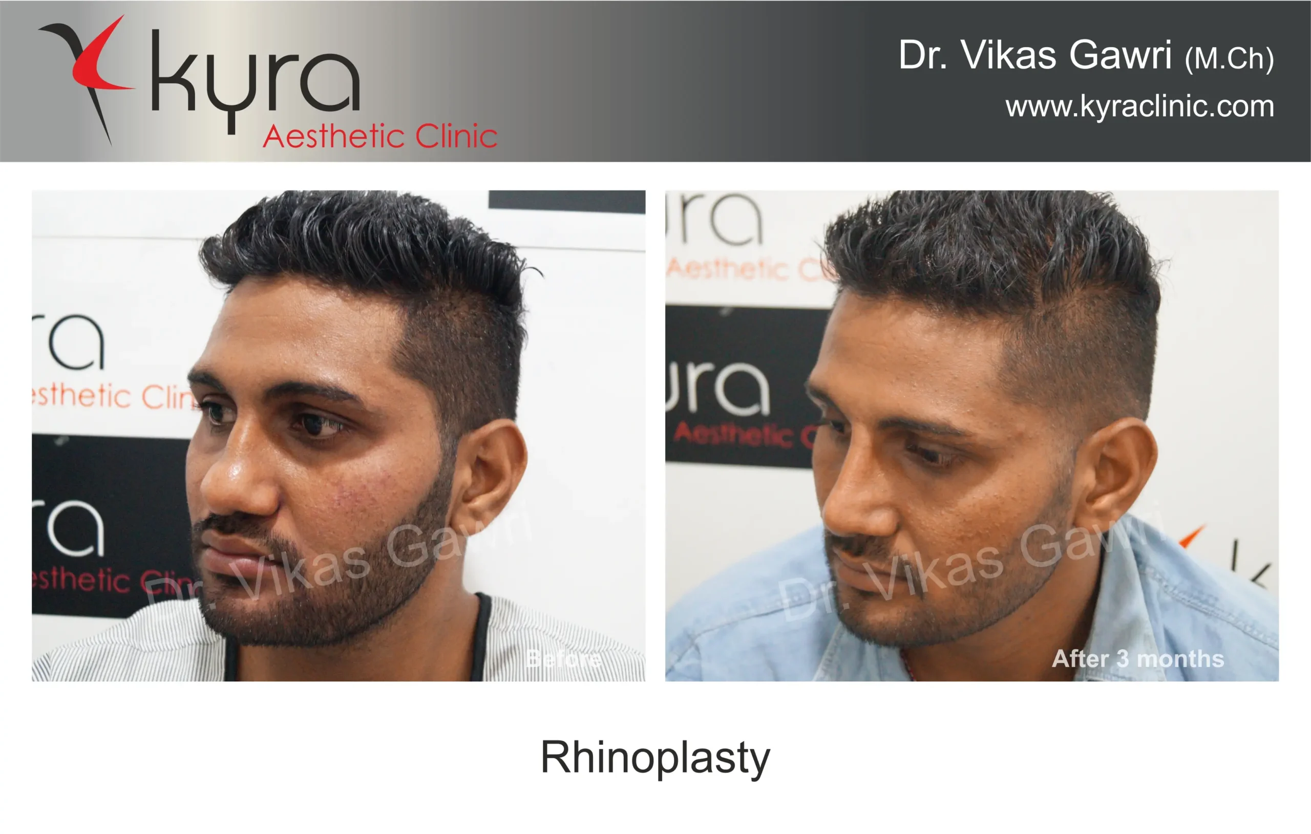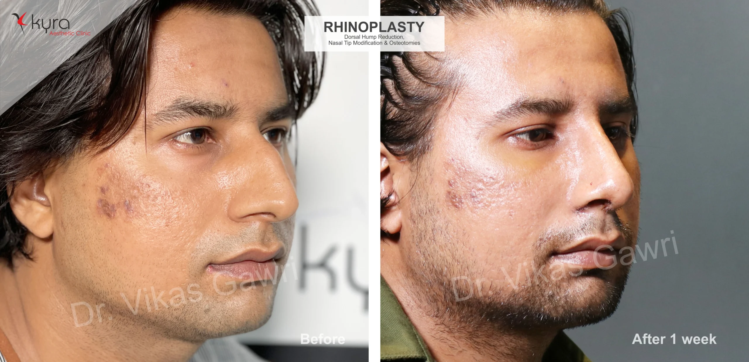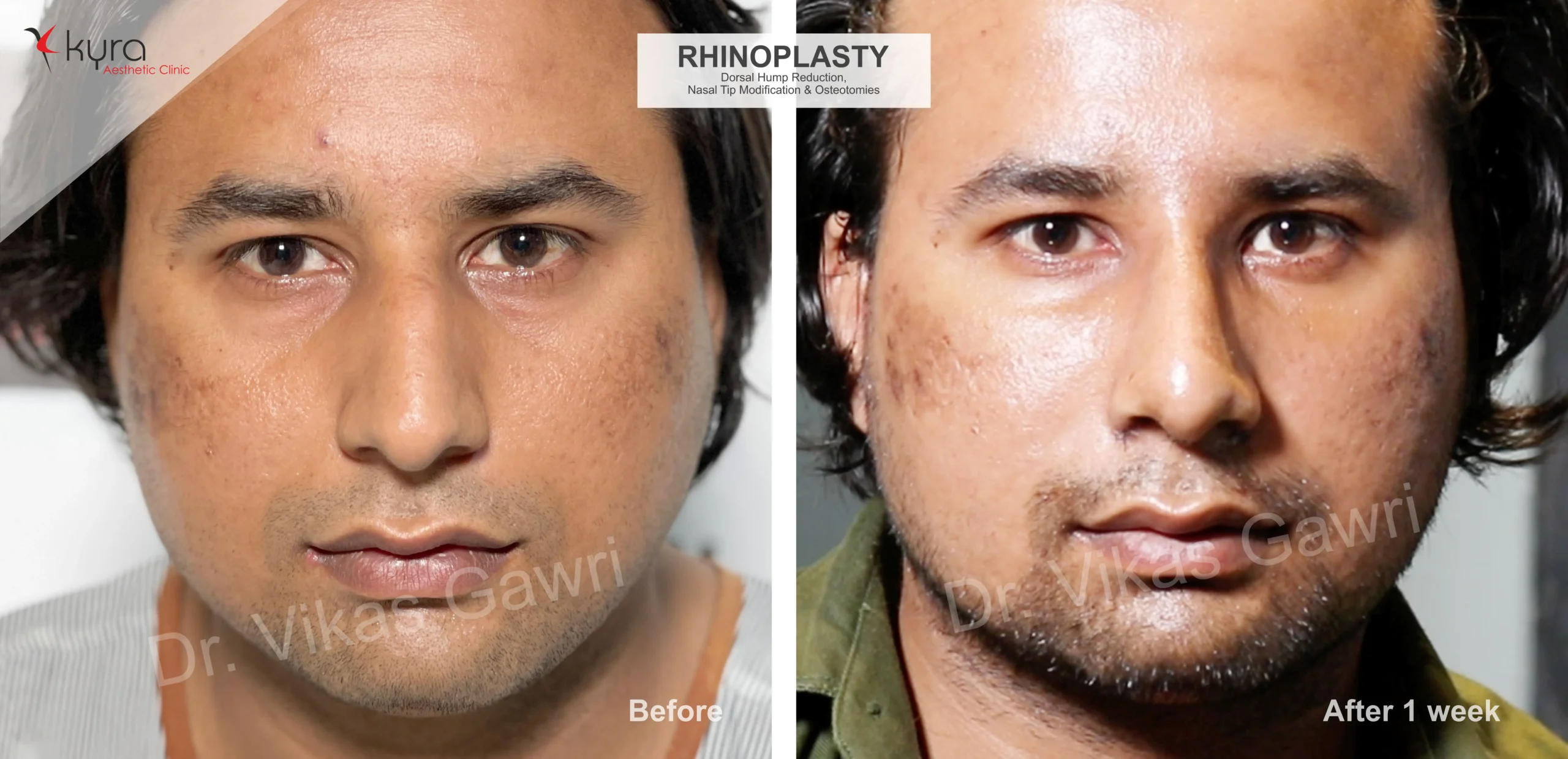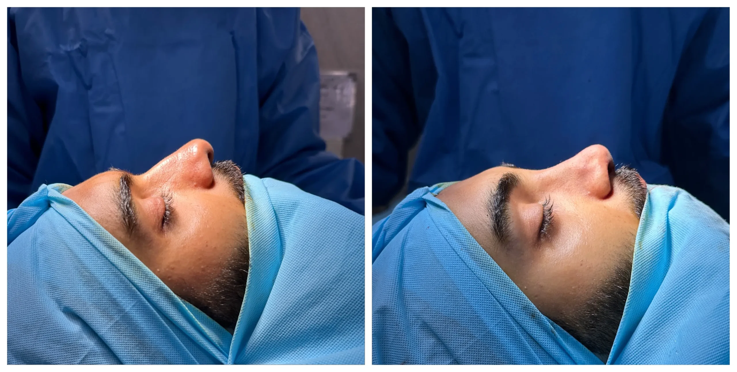 Navpreet underwent cosmetic Rhinoplasty to refine the nasal structure. Post-surgery, the nasal bridge appears more aligned and symmetrical, and the overall nasal tip projection is improved for a more balanced facial profile.