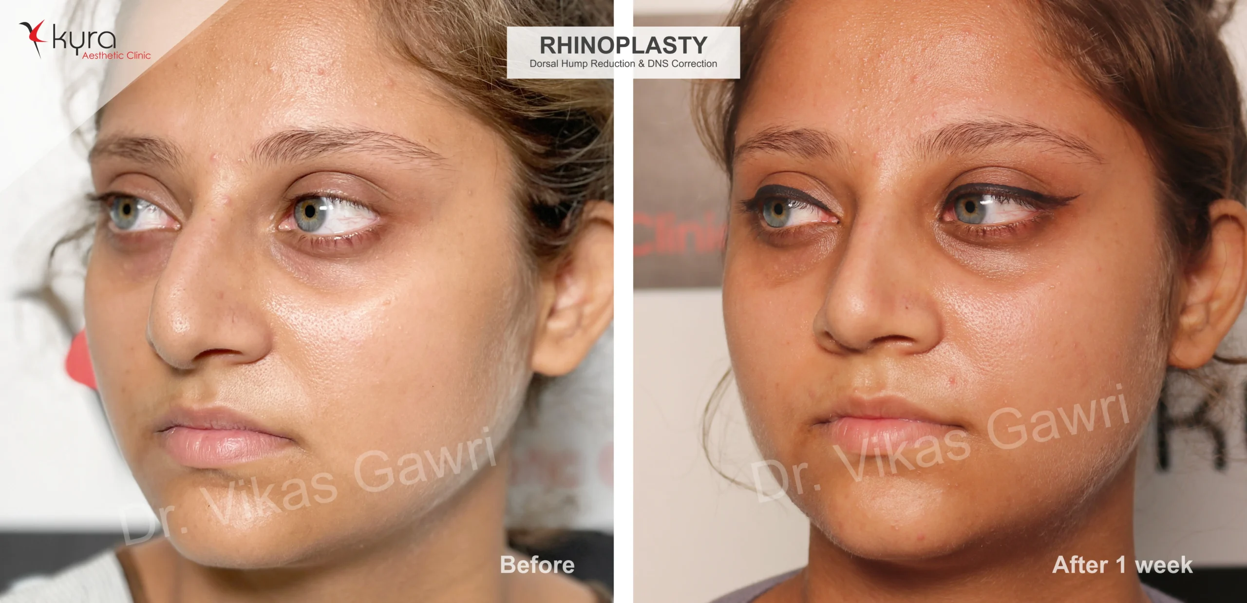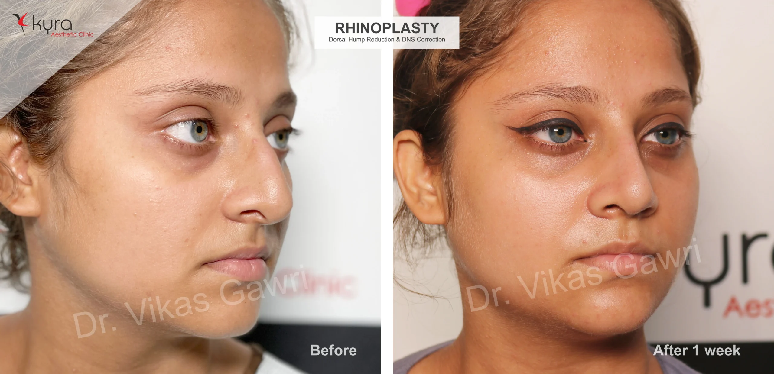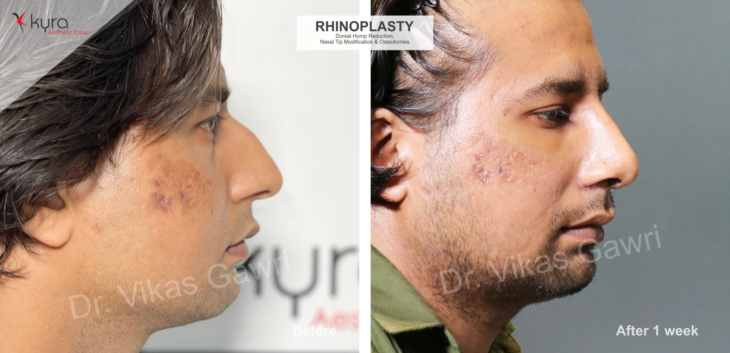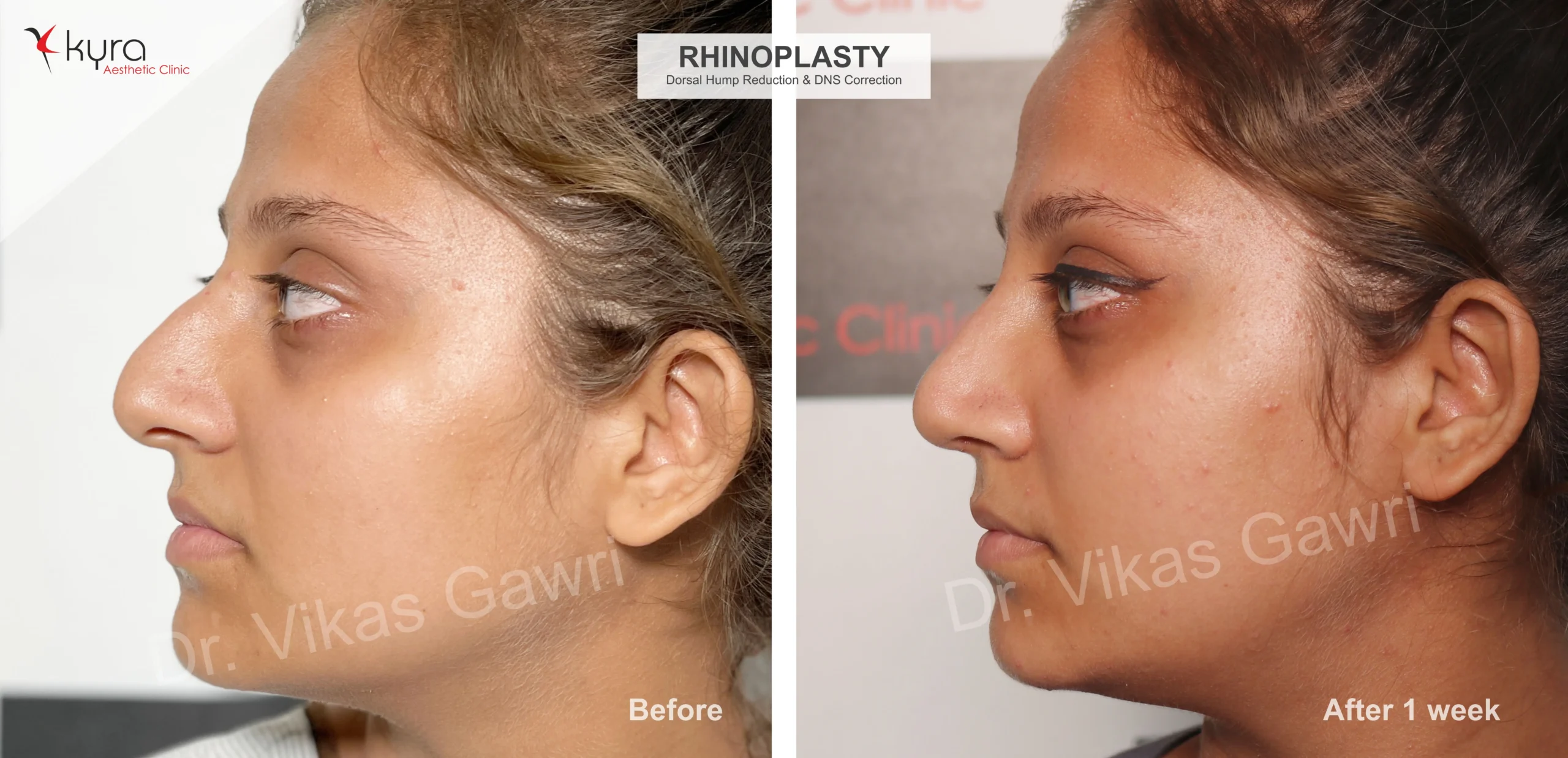 Navpreet underwent cosmetic Rhinoplasty to refine the nasal structure. Post-surgery, the nasal bridge appears more aligned and symmetrical, and the overall nasal tip projection is improved for a more balanced facial profile.