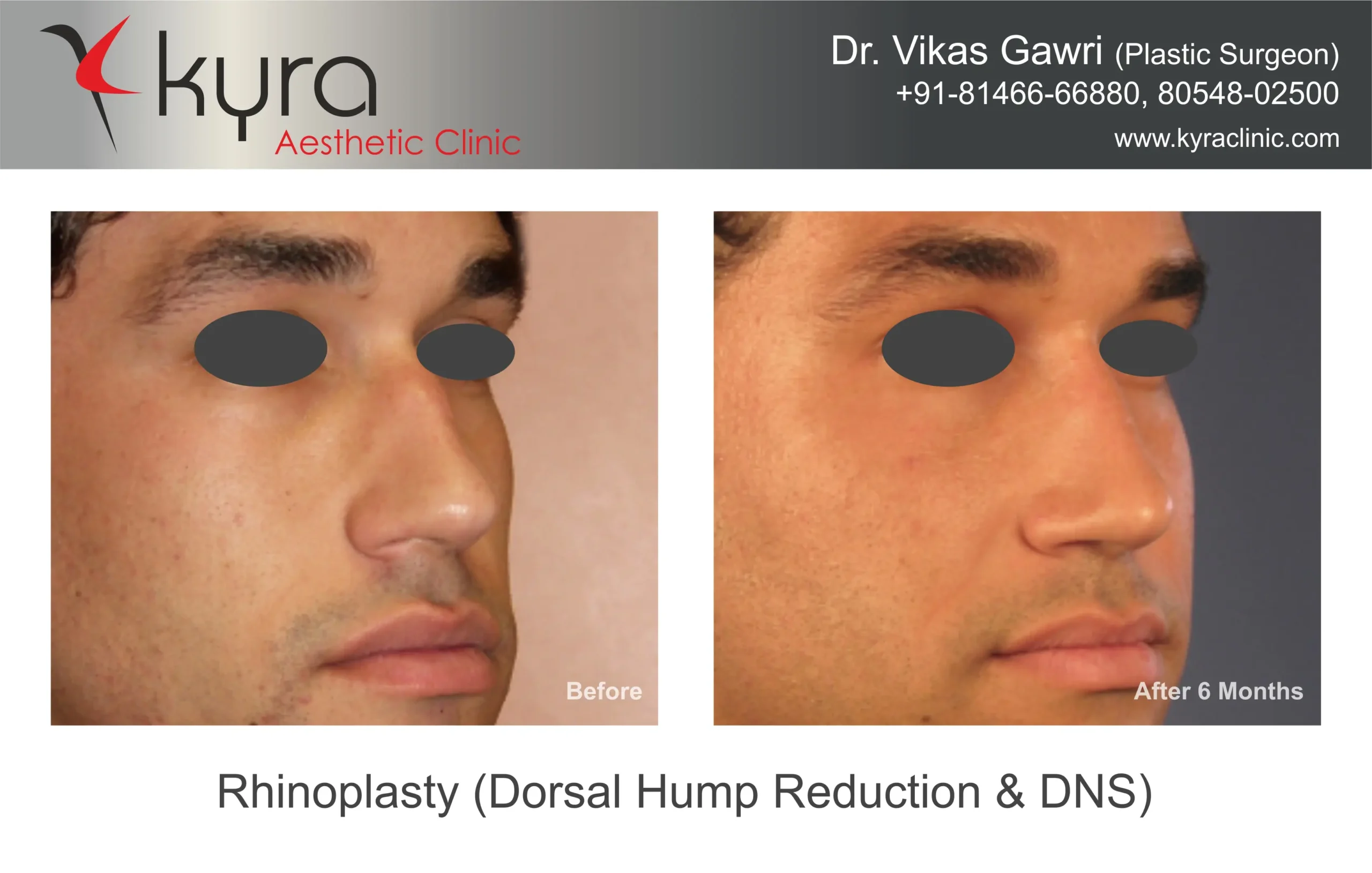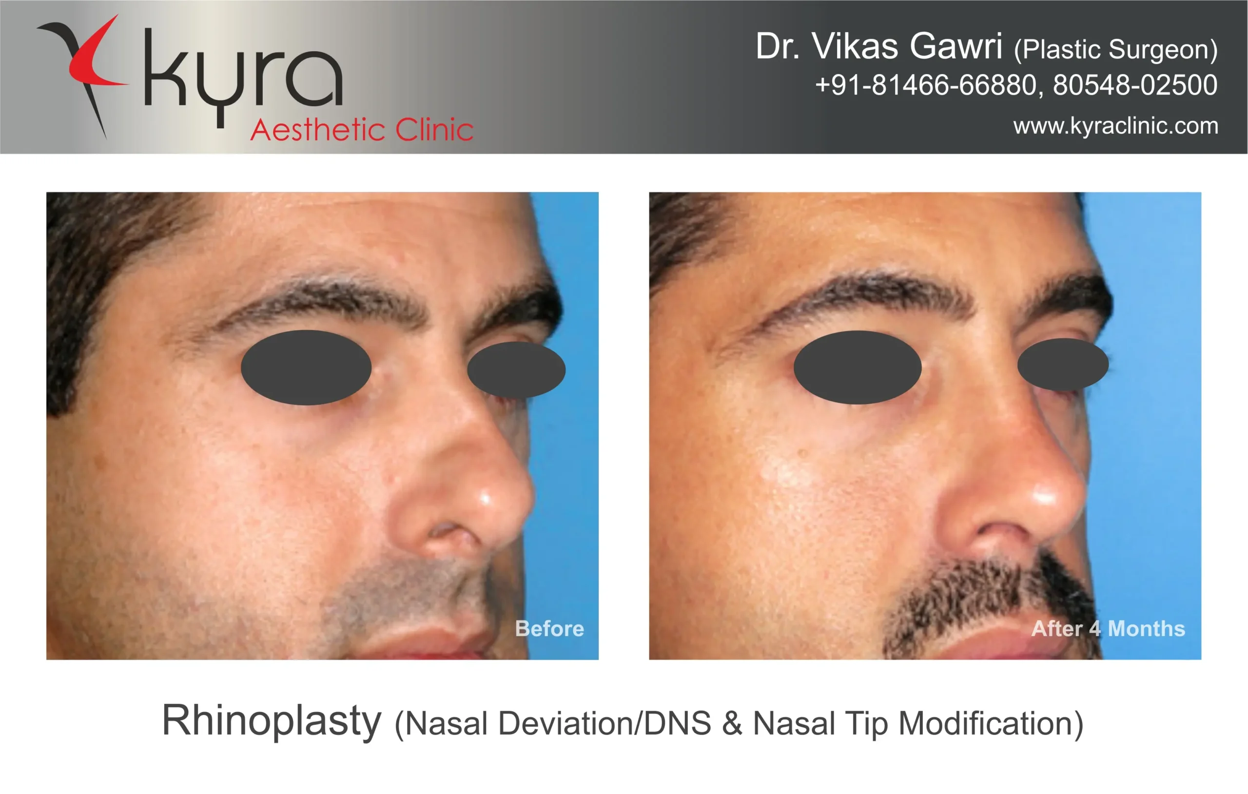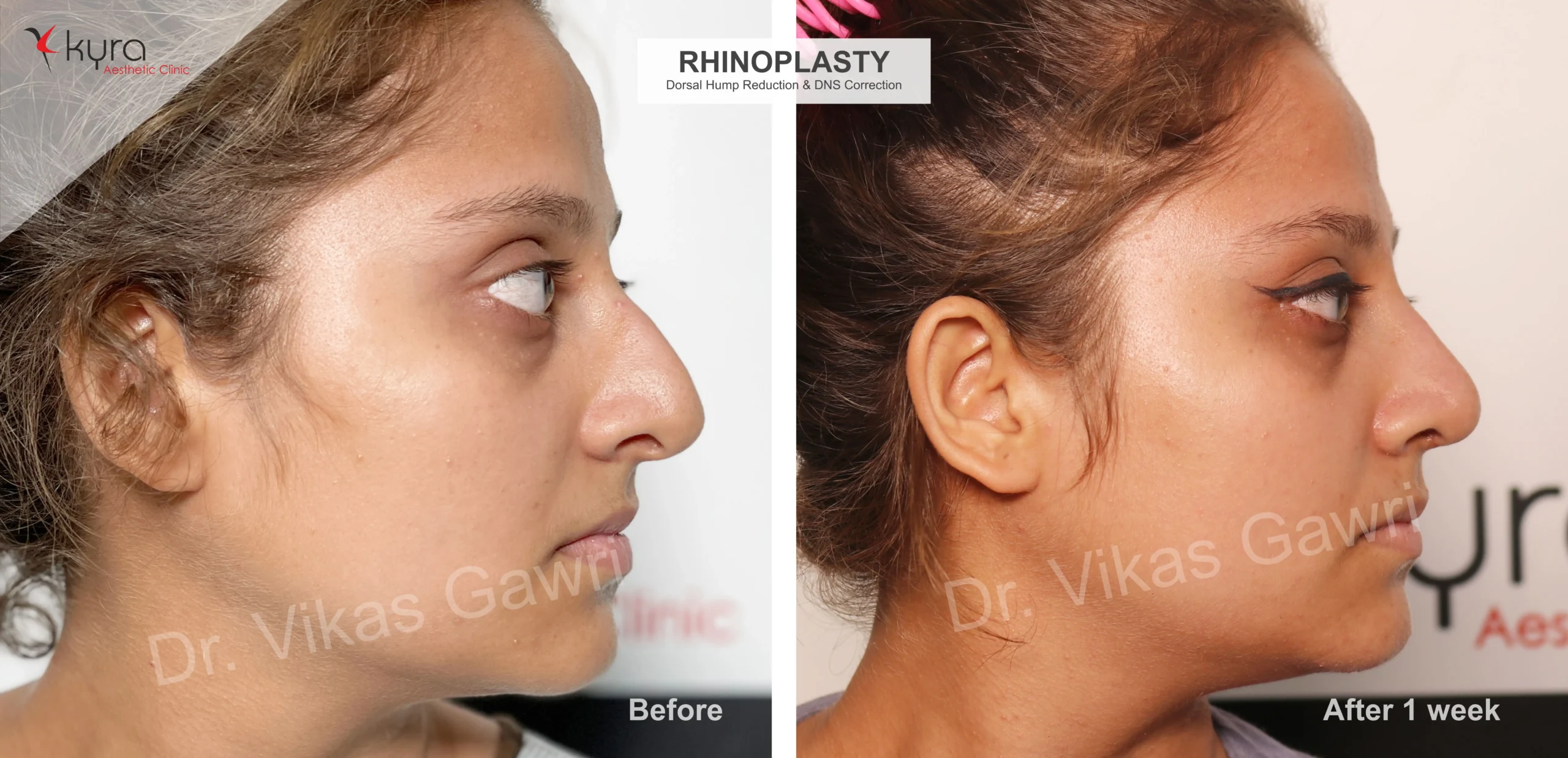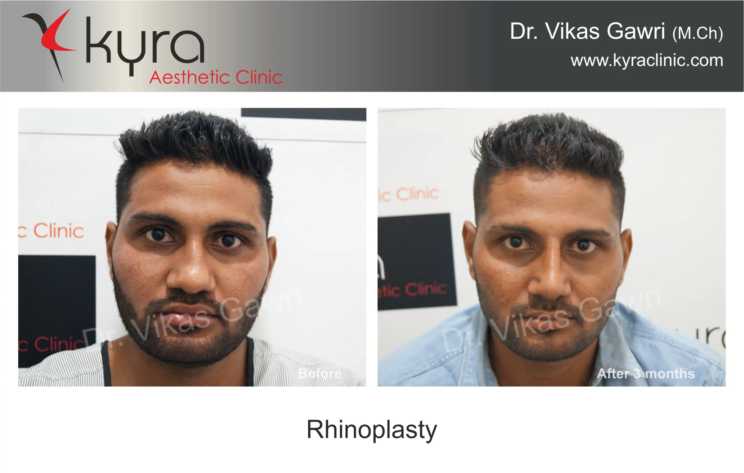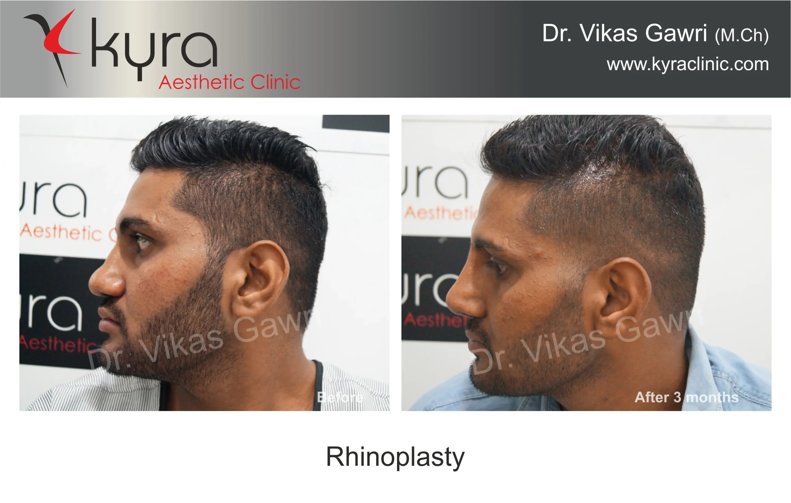 Navpreet underwent cosmetic Rhinoplasty to refine the nasal structure. Post-surgery, the nasal bridge appears more aligned and symmetrical, and the overall nasal tip projection is improved for a more balanced facial profile.