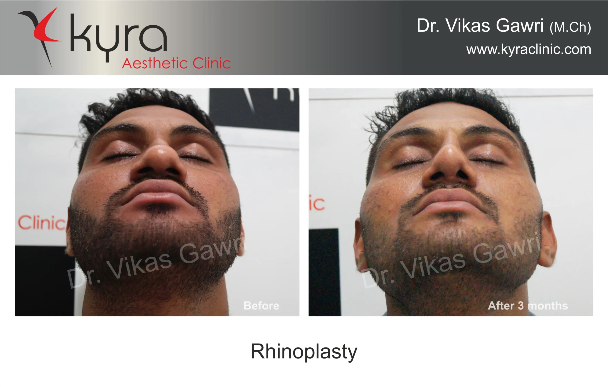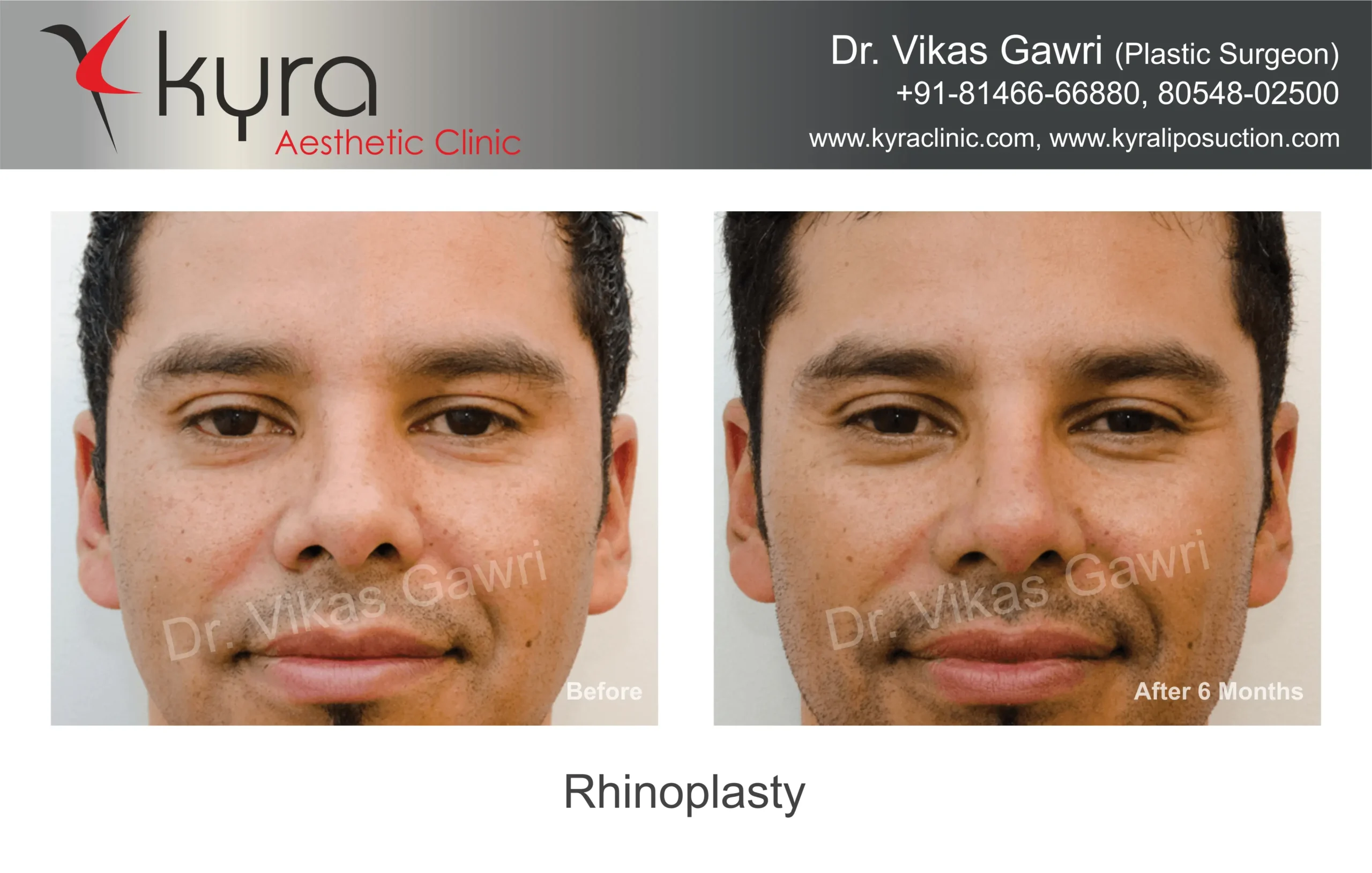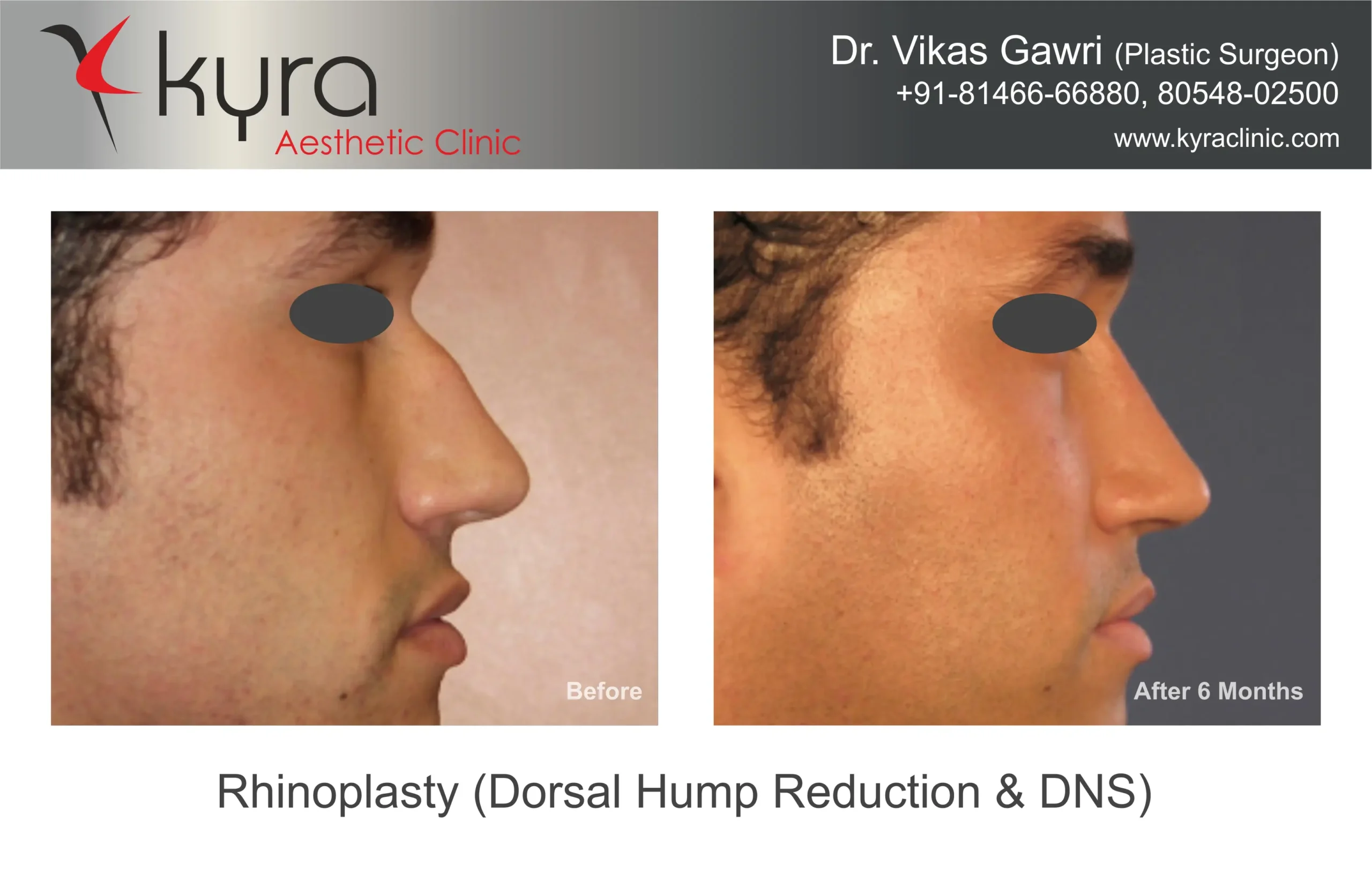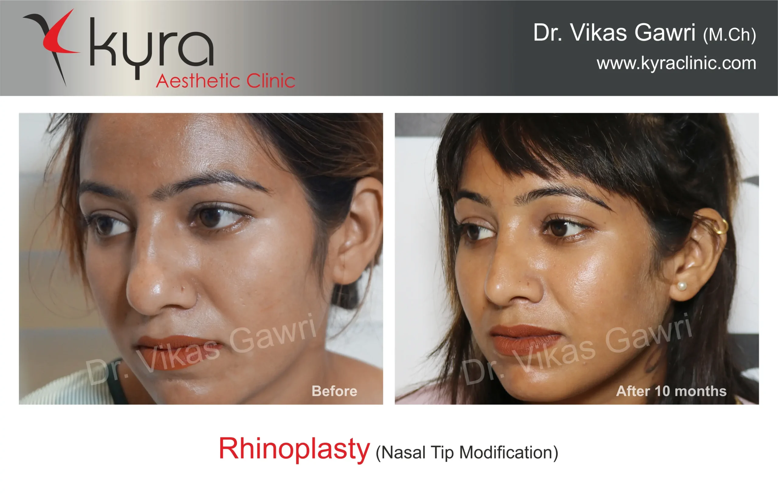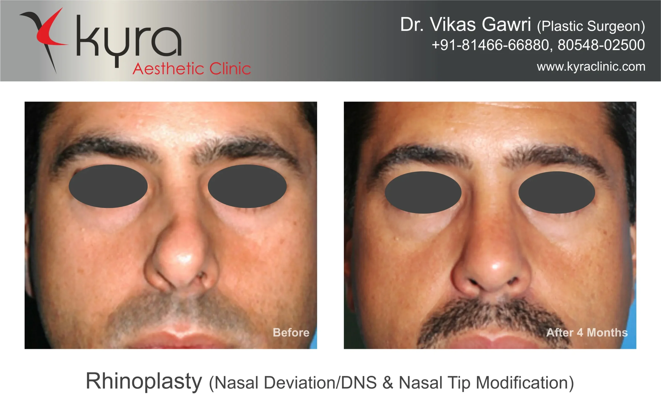 Navpreet underwent cosmetic Rhinoplasty to refine the nasal structure. Post-surgery, the nasal bridge appears more aligned and symmetrical, and the overall nasal tip projection is improved for a more balanced facial profile.