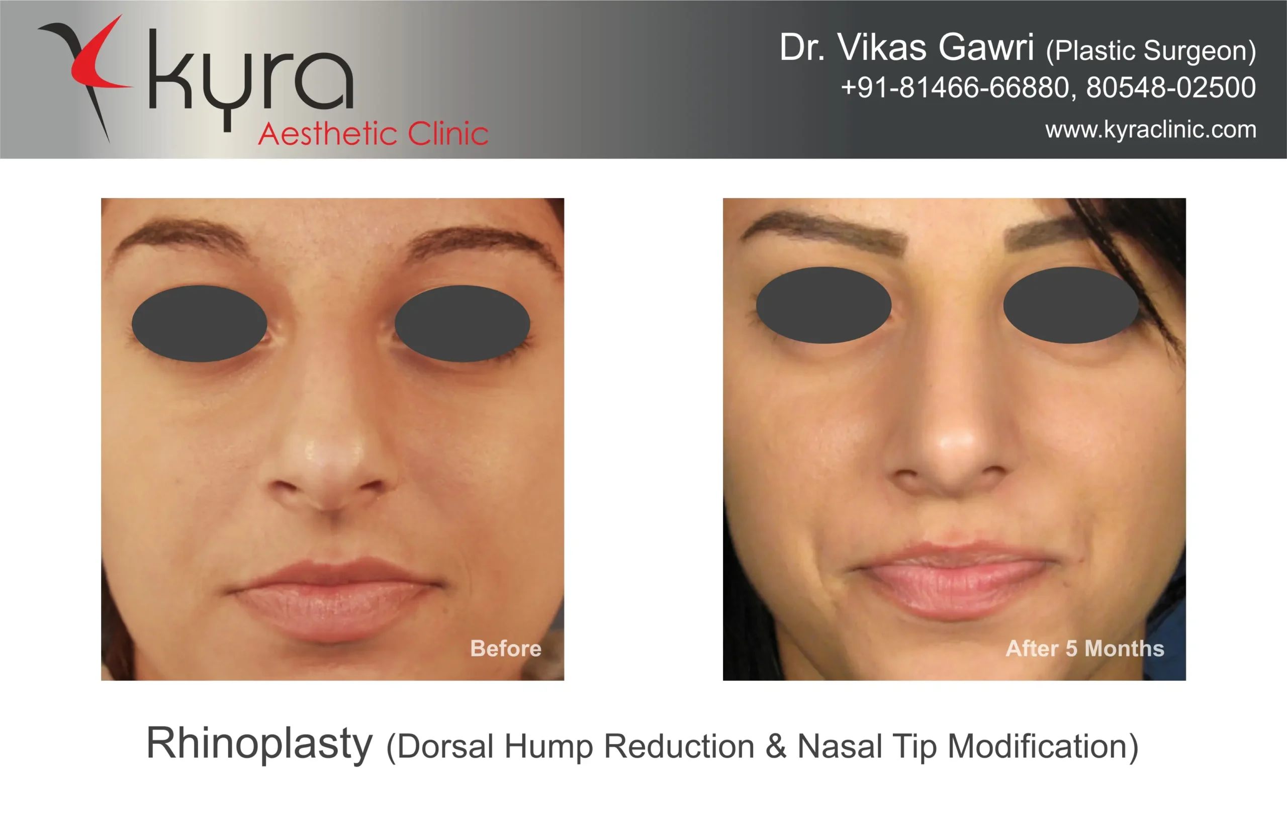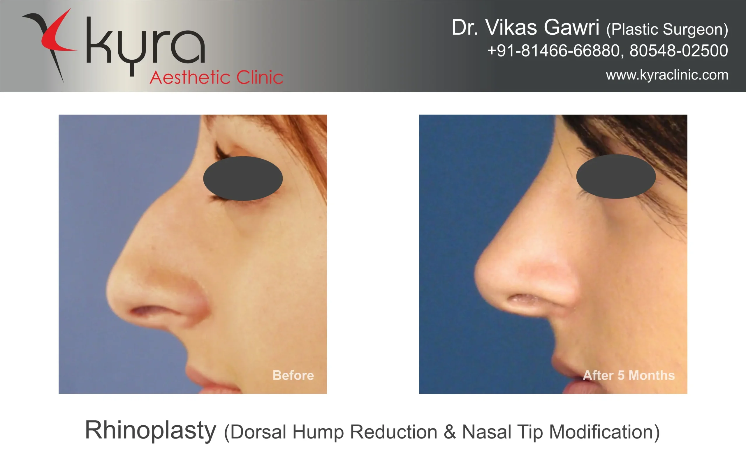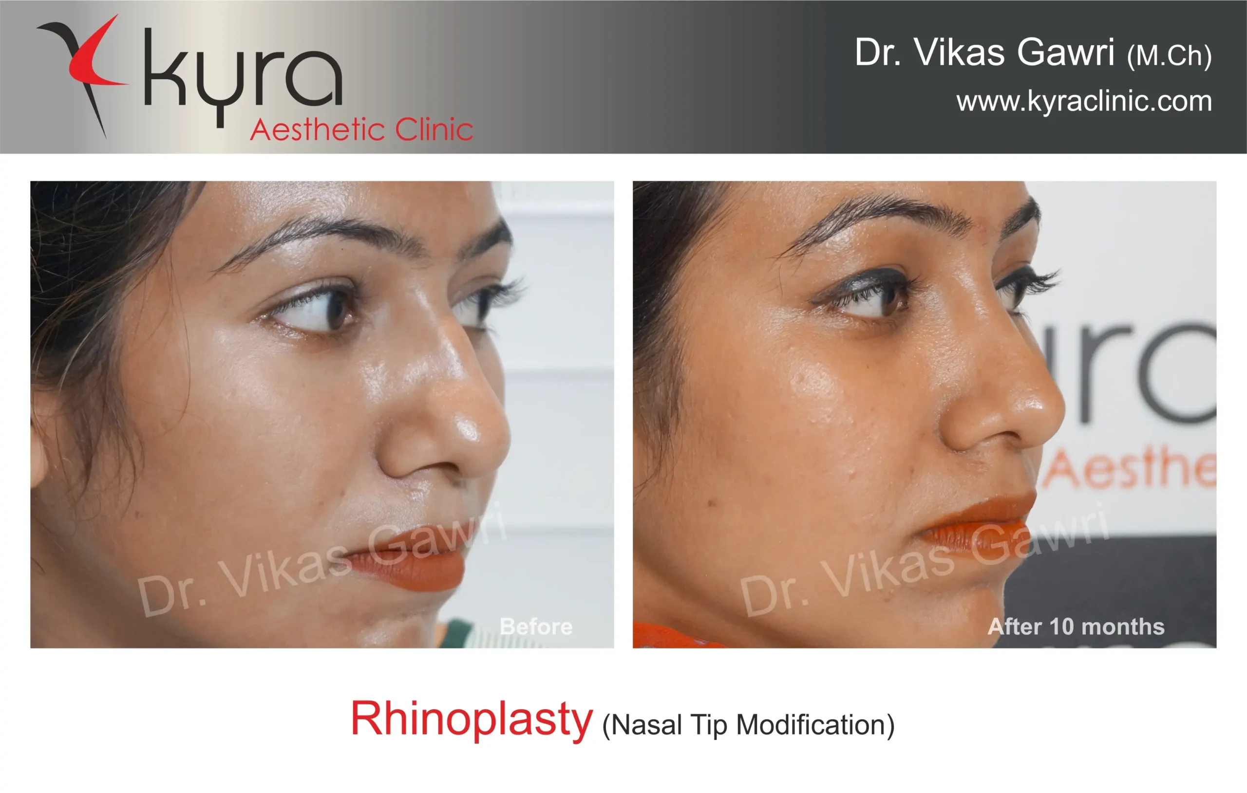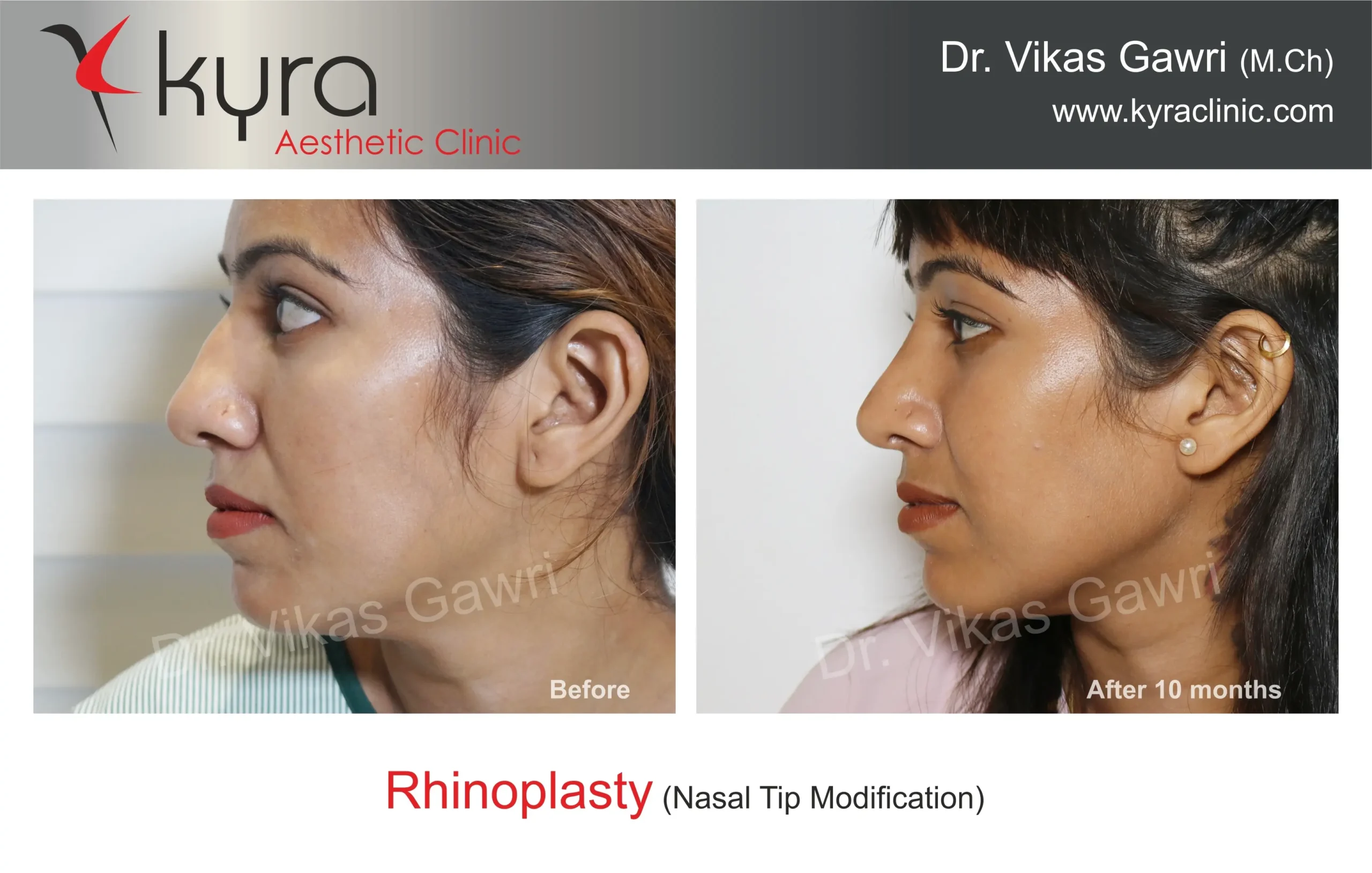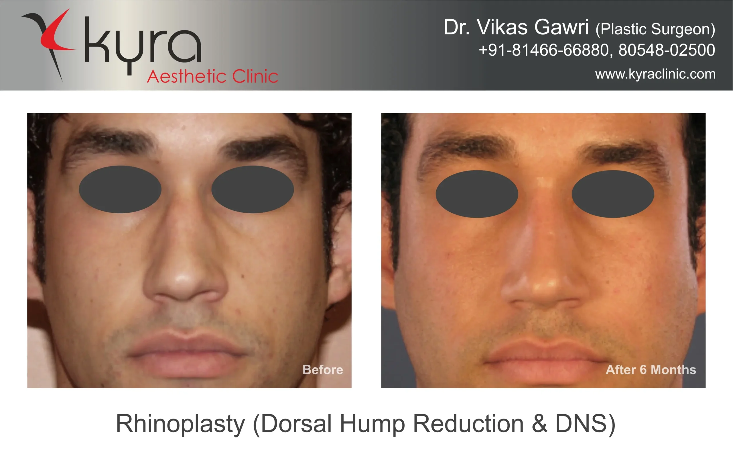 Navpreet underwent cosmetic Rhinoplasty to refine the nasal structure. Post-surgery, the nasal bridge appears more aligned and symmetrical, and the overall nasal tip projection is improved for a more balanced facial profile.