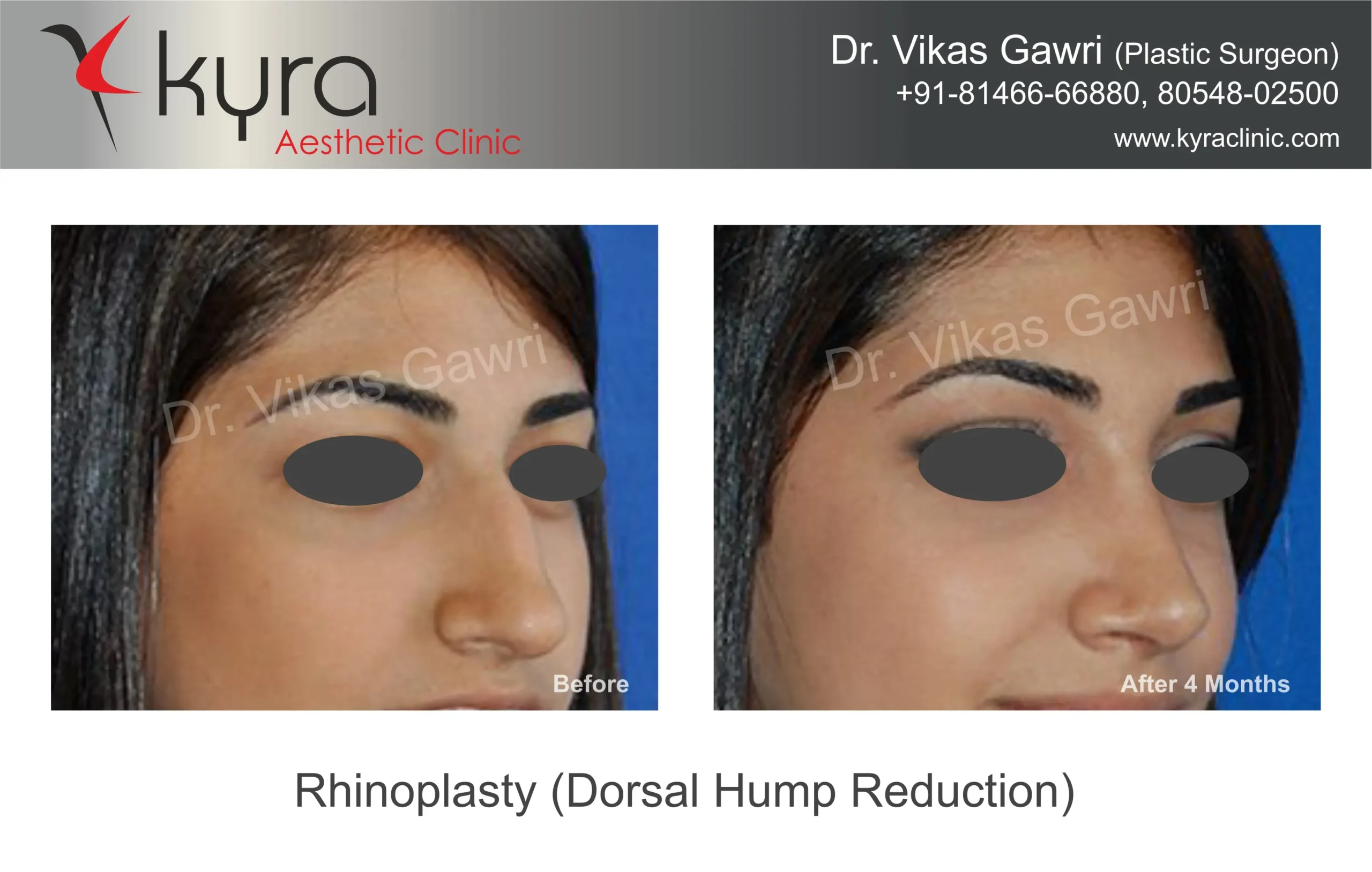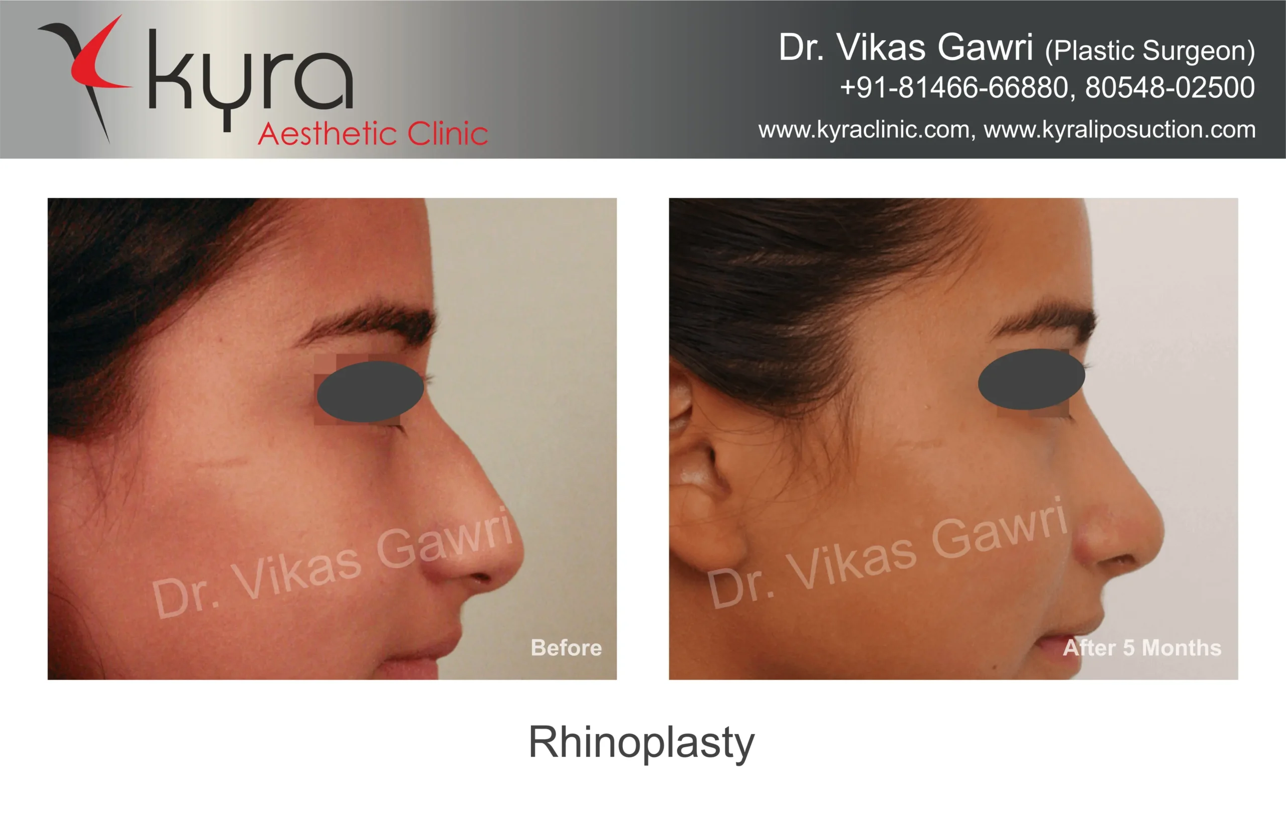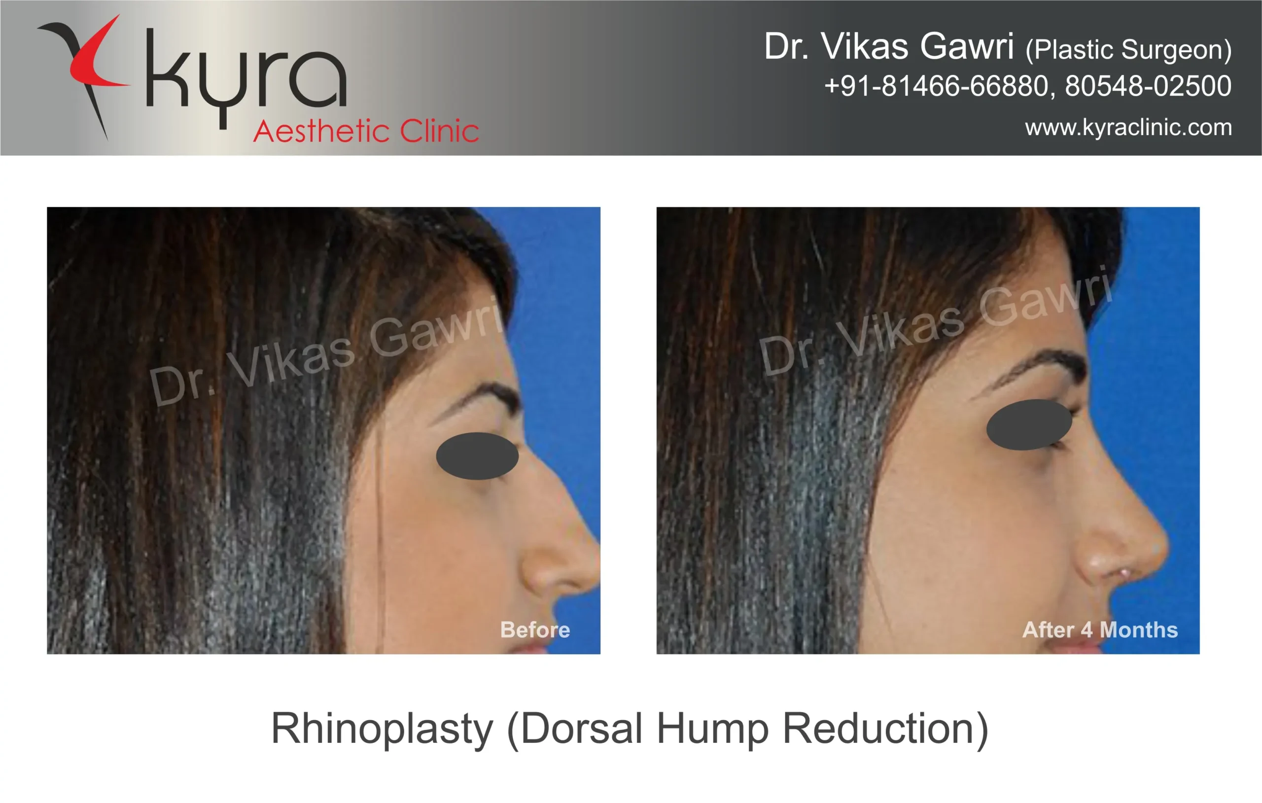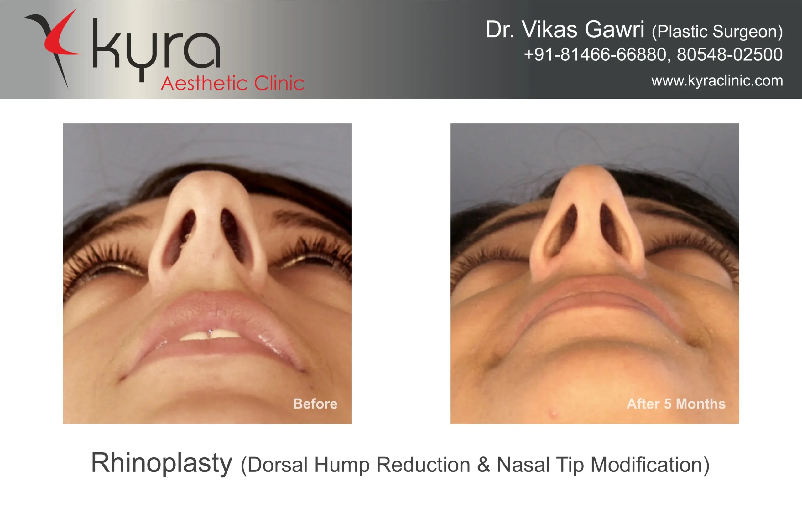 Navpreet underwent cosmetic Rhinoplasty to refine the nasal structure. Post-surgery, the nasal bridge appears more aligned and symmetrical, and the overall nasal tip projection is improved for a more balanced facial profile.