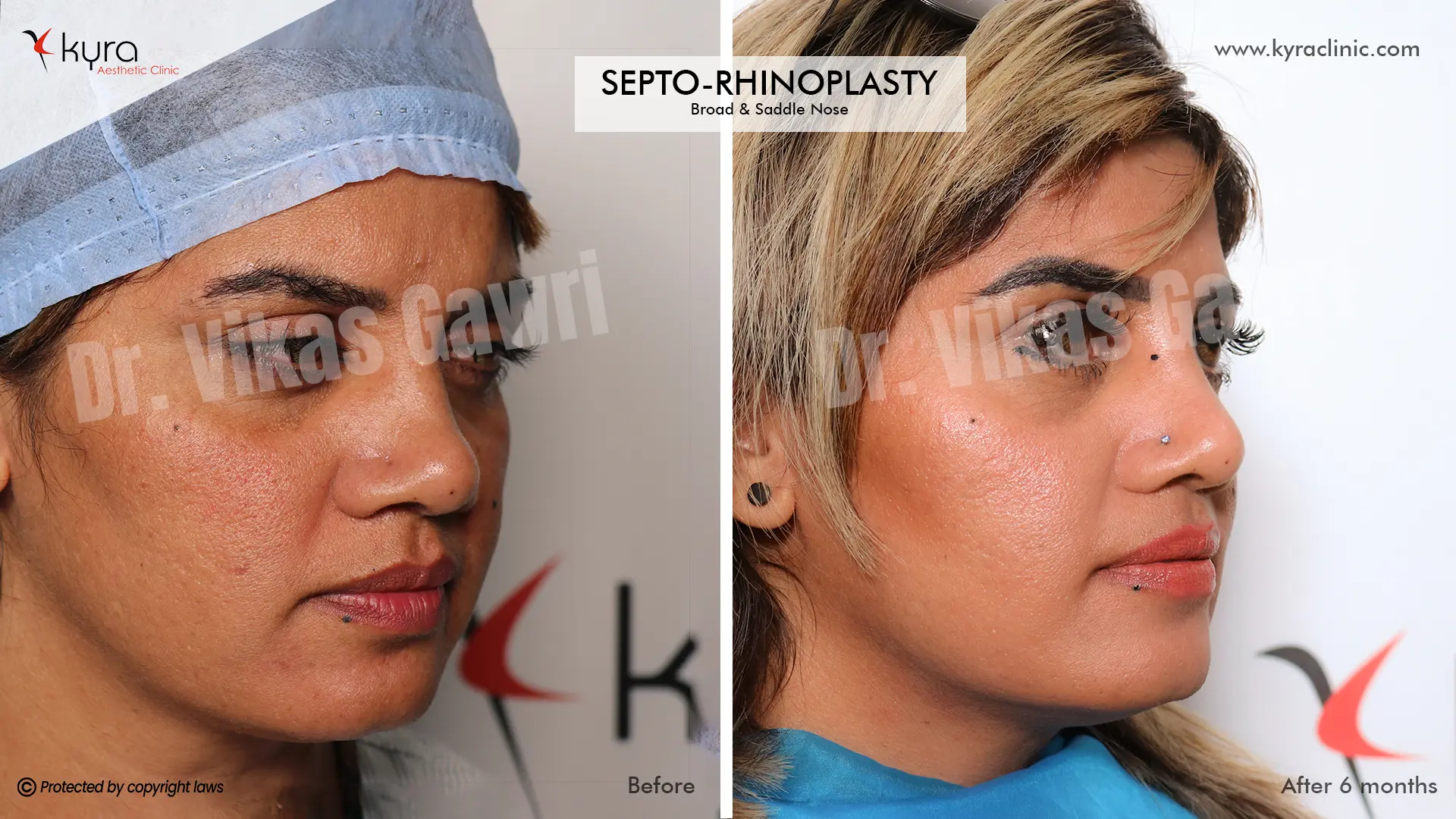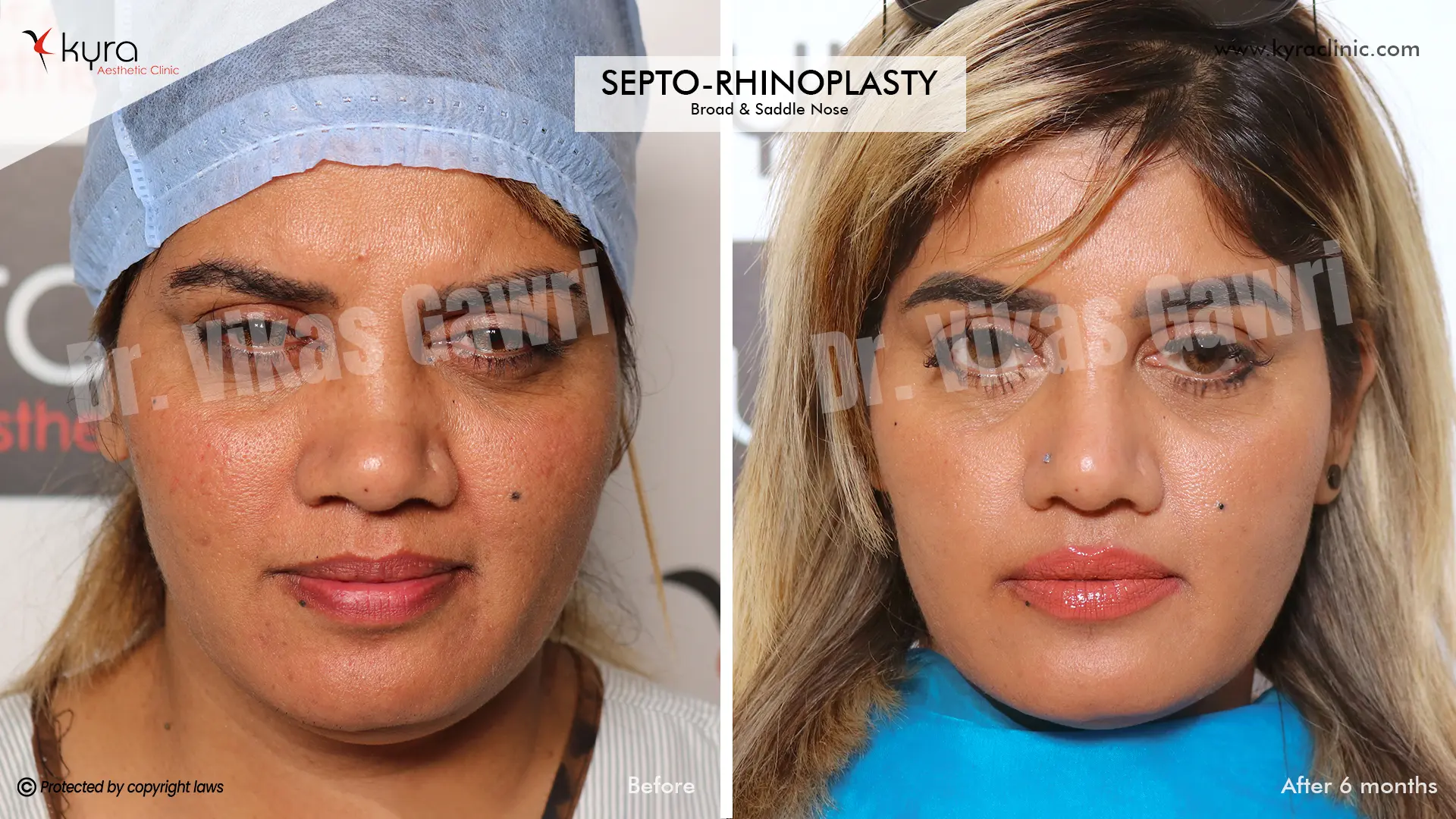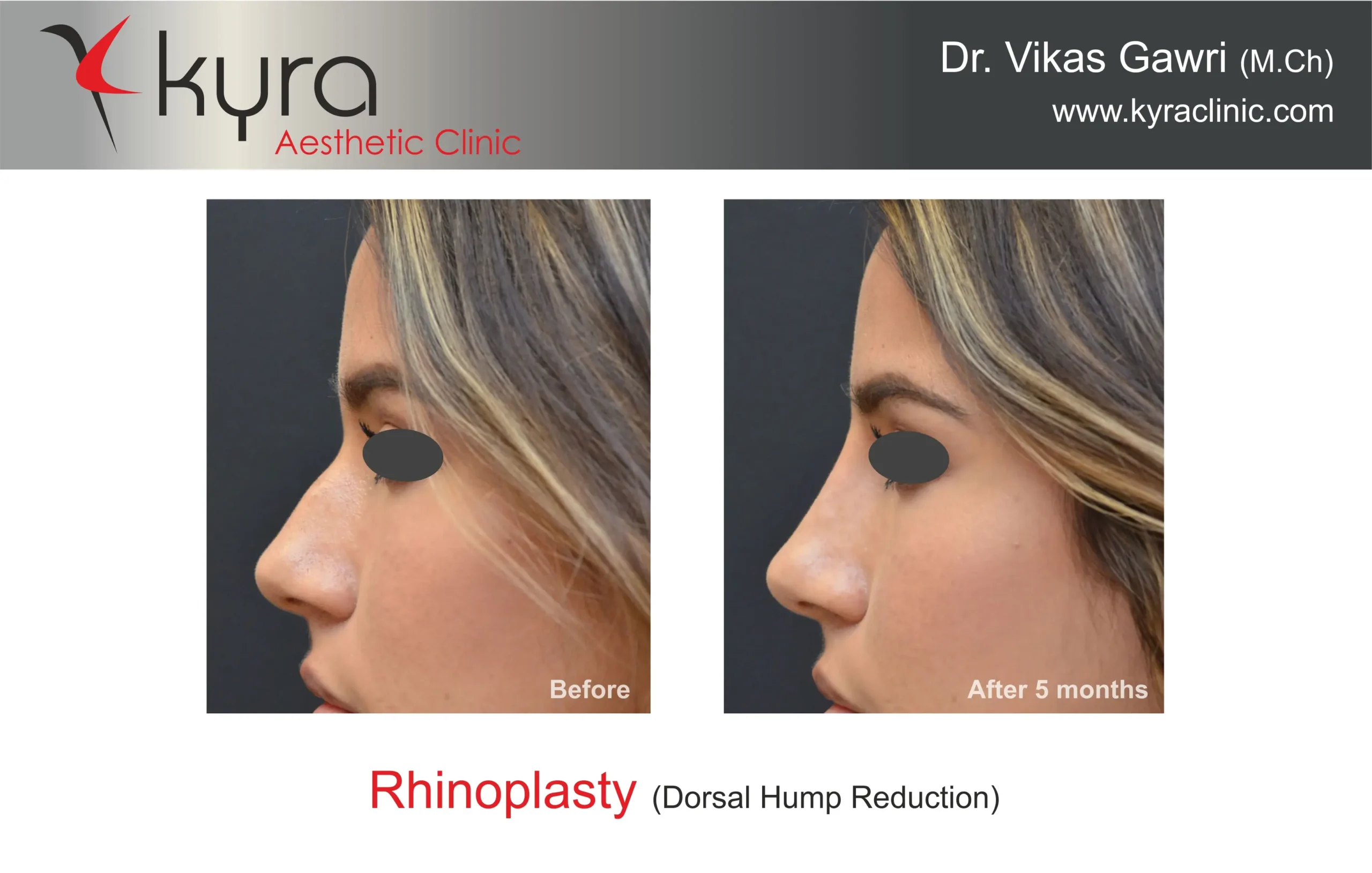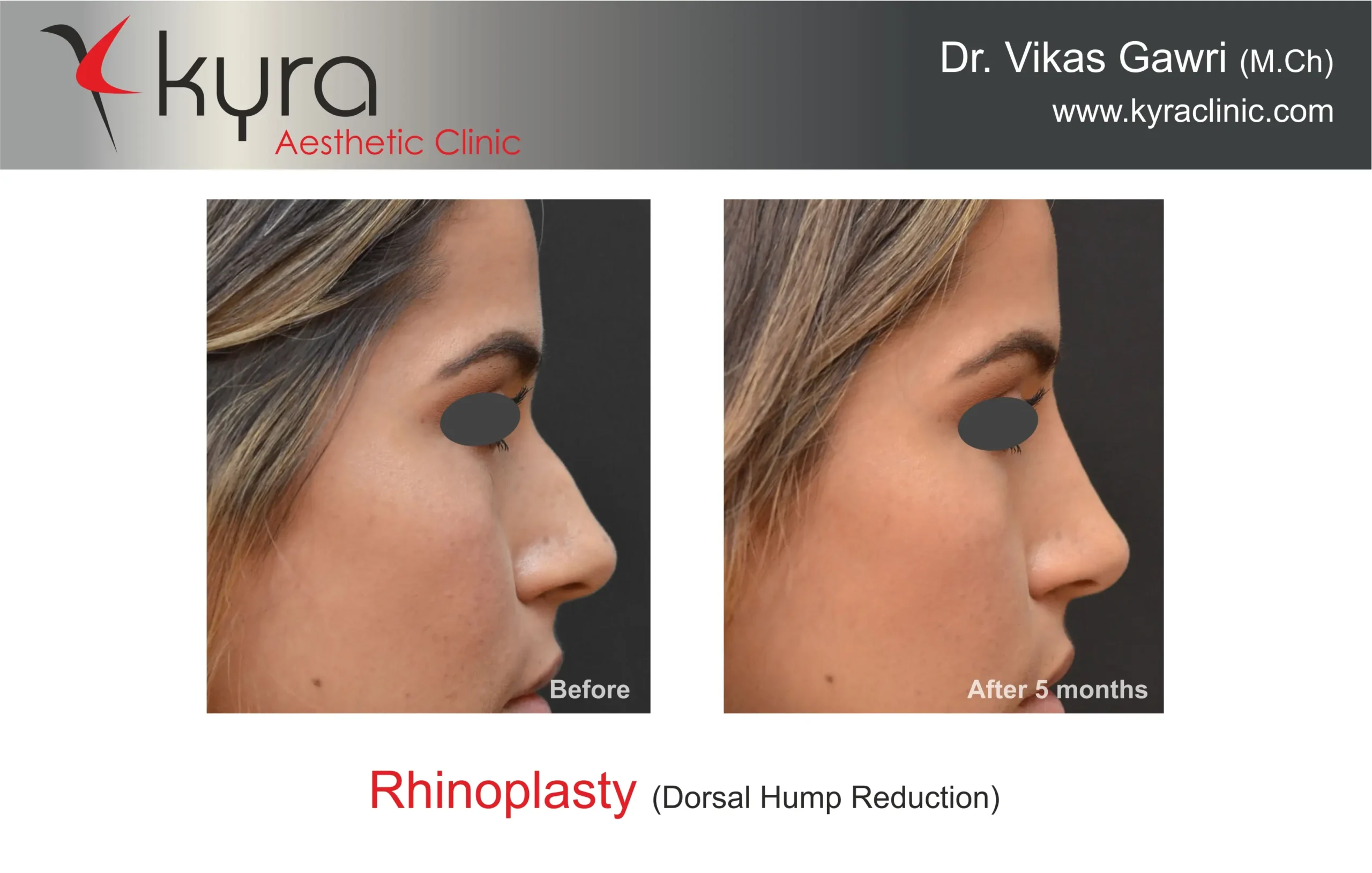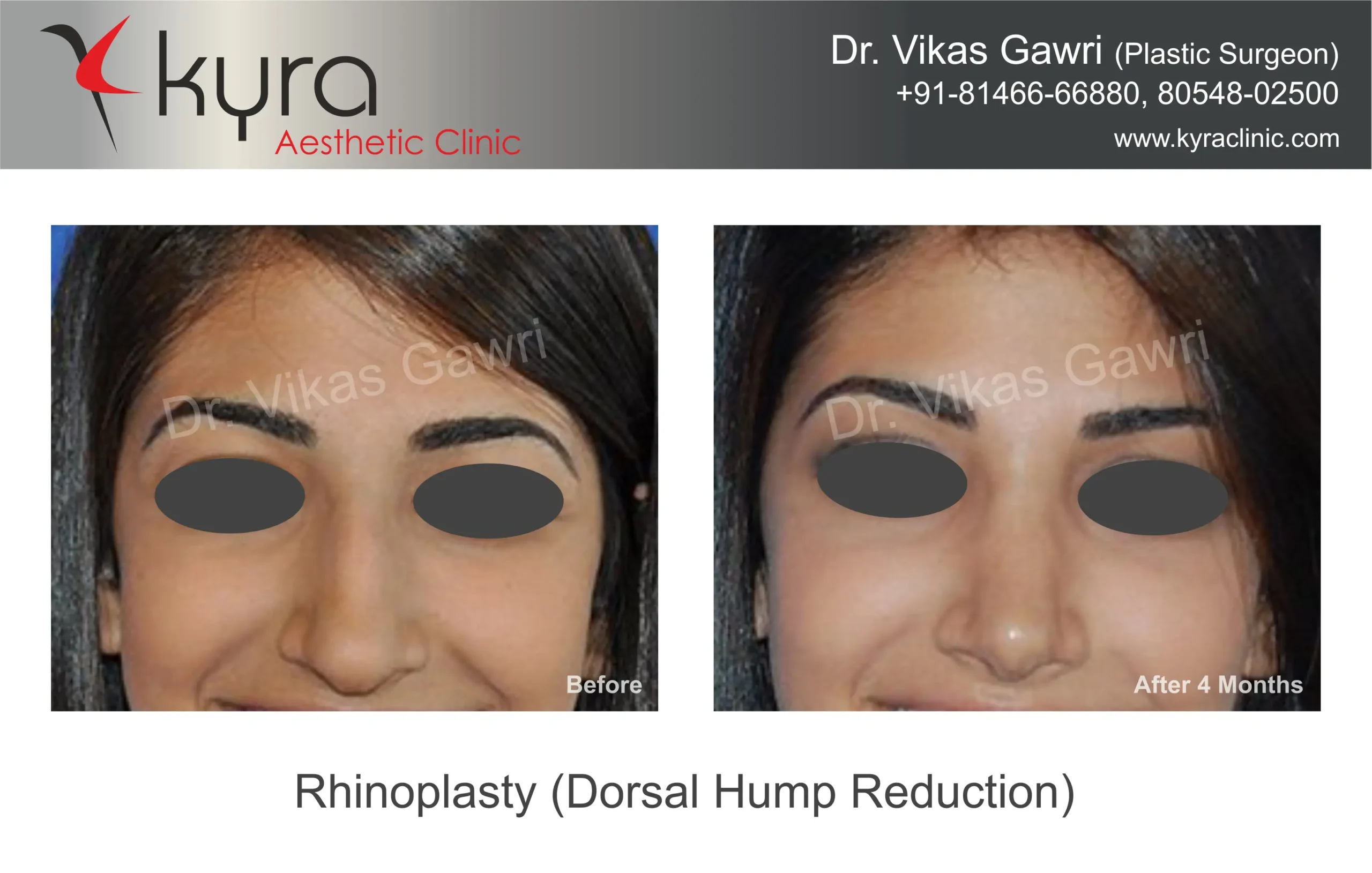 Navpreet underwent cosmetic Rhinoplasty to refine the nasal structure. Post-surgery, the nasal bridge appears more aligned and symmetrical, and the overall nasal tip projection is improved for a more balanced facial profile.