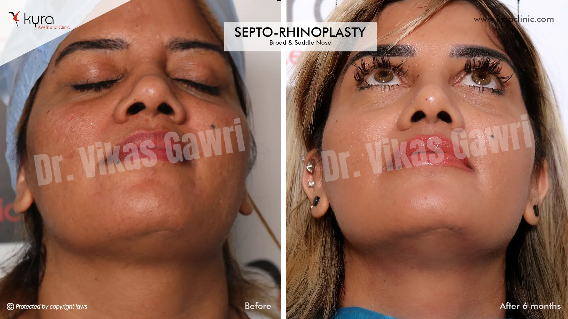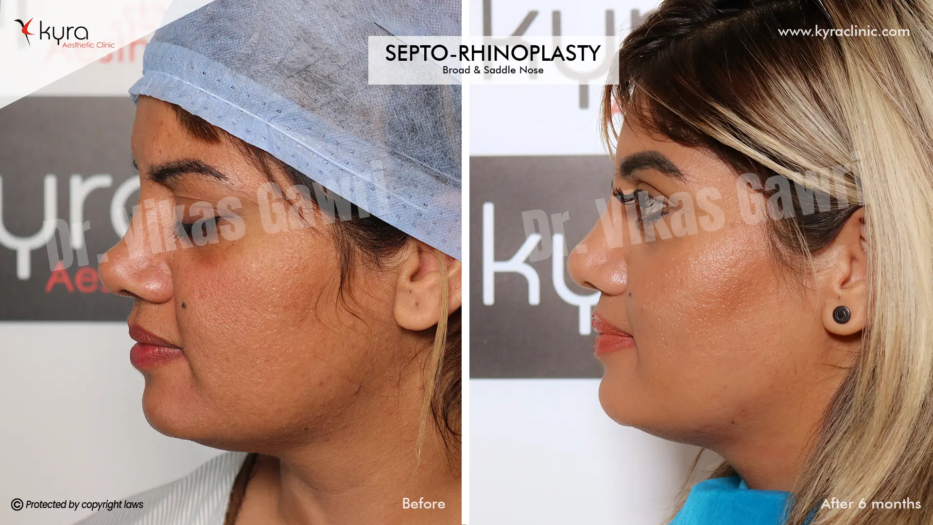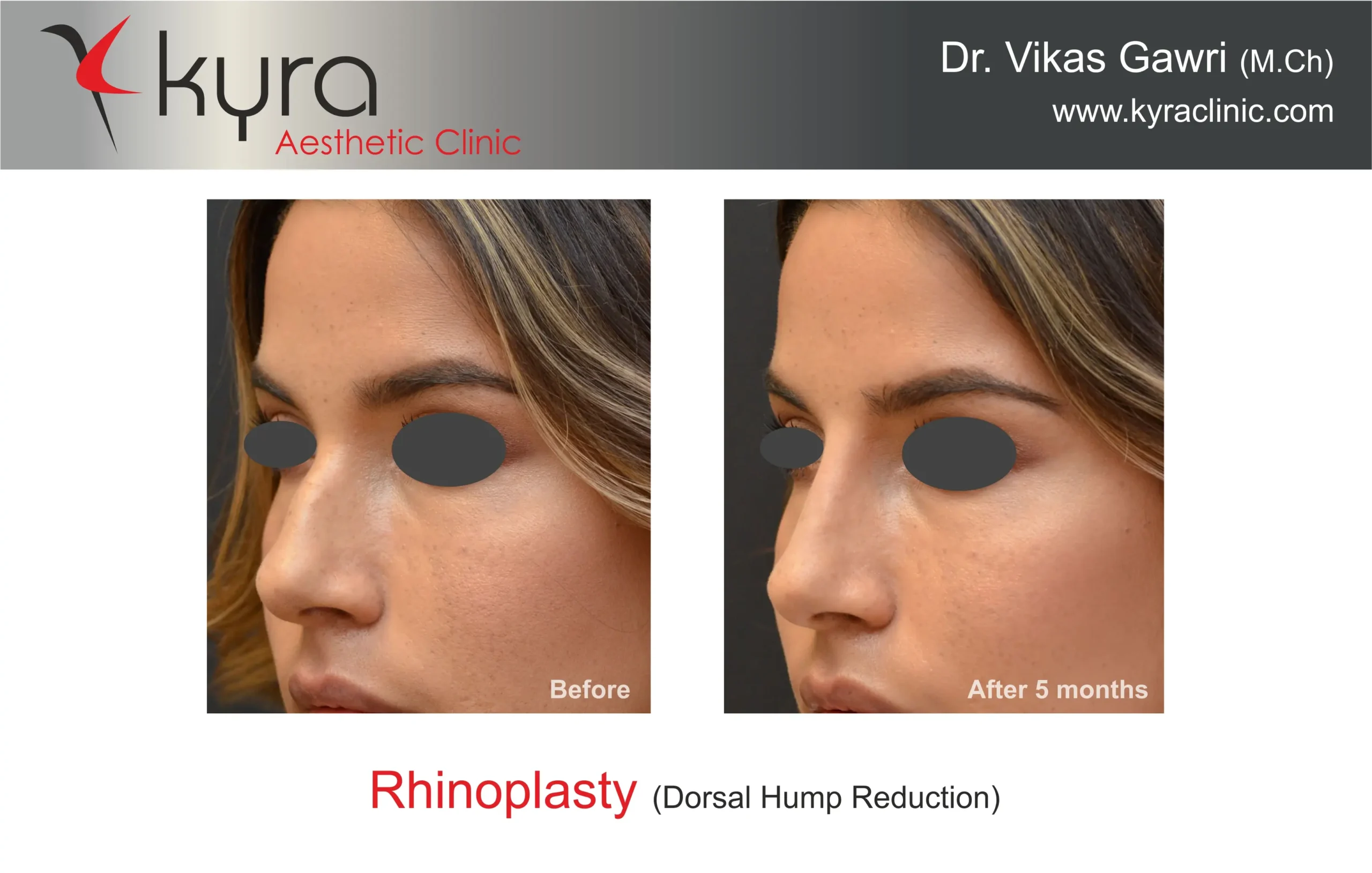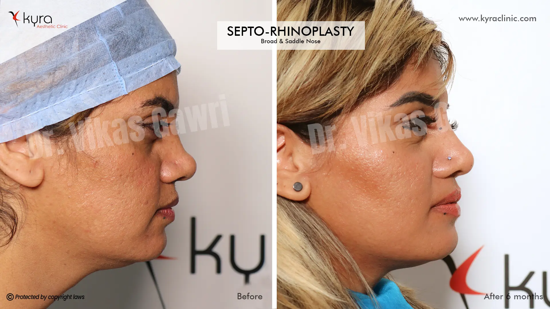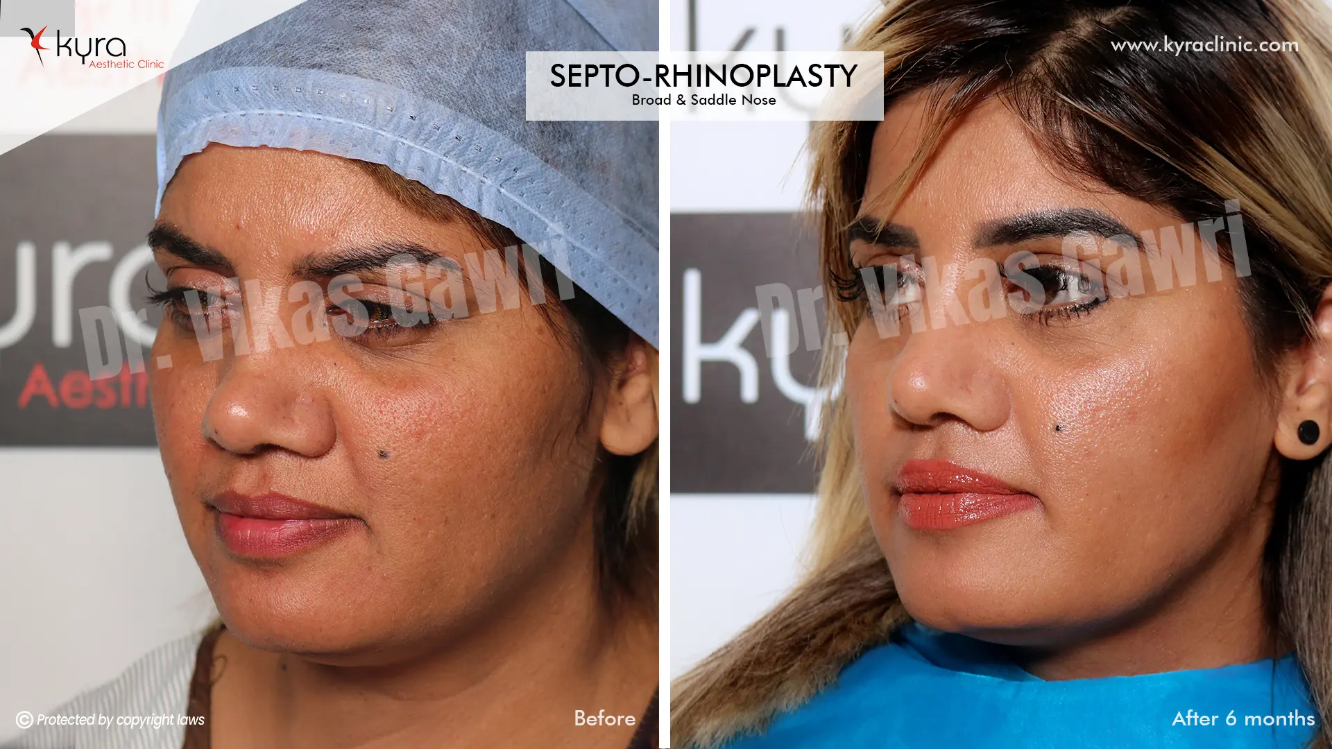 Navpreet underwent cosmetic Rhinoplasty to refine the nasal structure. Post-surgery, the nasal bridge appears more aligned and symmetrical, and the overall nasal tip projection is improved for a more balanced facial profile.